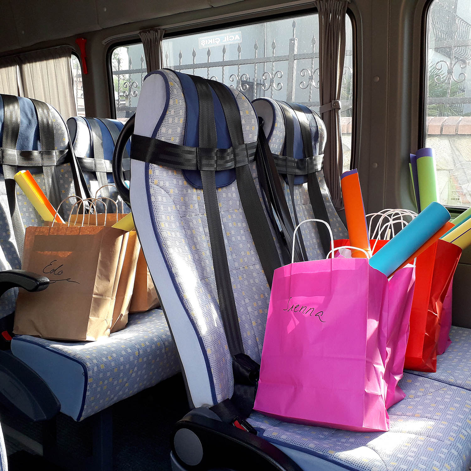 Bright pink, orange and red paper bags waiting on the seats of the mini bus, which, until a few weeks ago, was driving three, four and five-year-old Early Birds Istanbul children to and from their “nest” each day. Now, while the children are staying at home during the Covid-19 pandemic, the preschool’s drivers, Erhan and Yüksel, bring weekly Early Birds Bags to their homes.