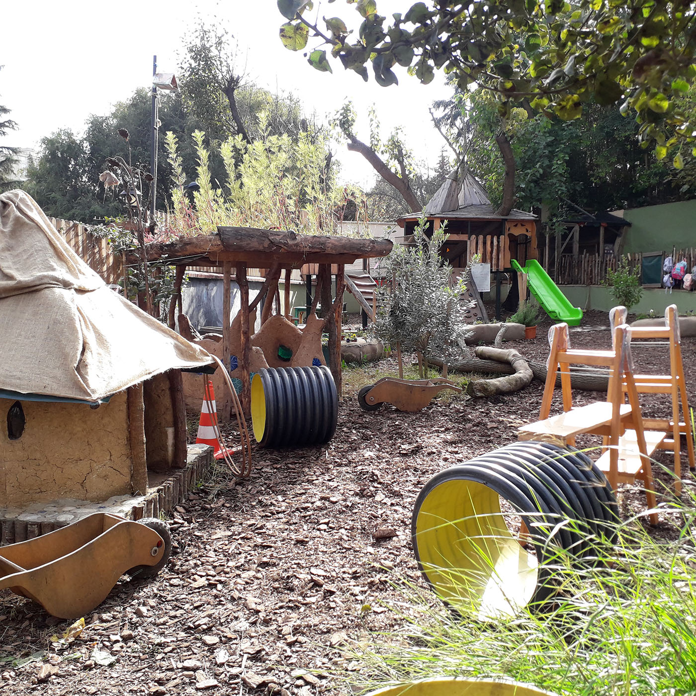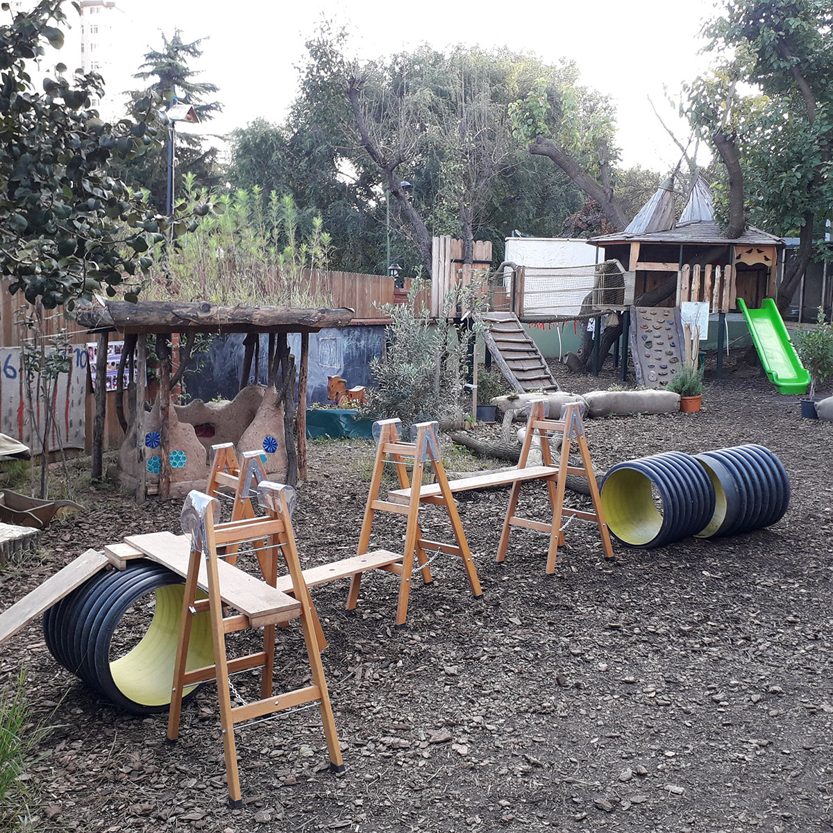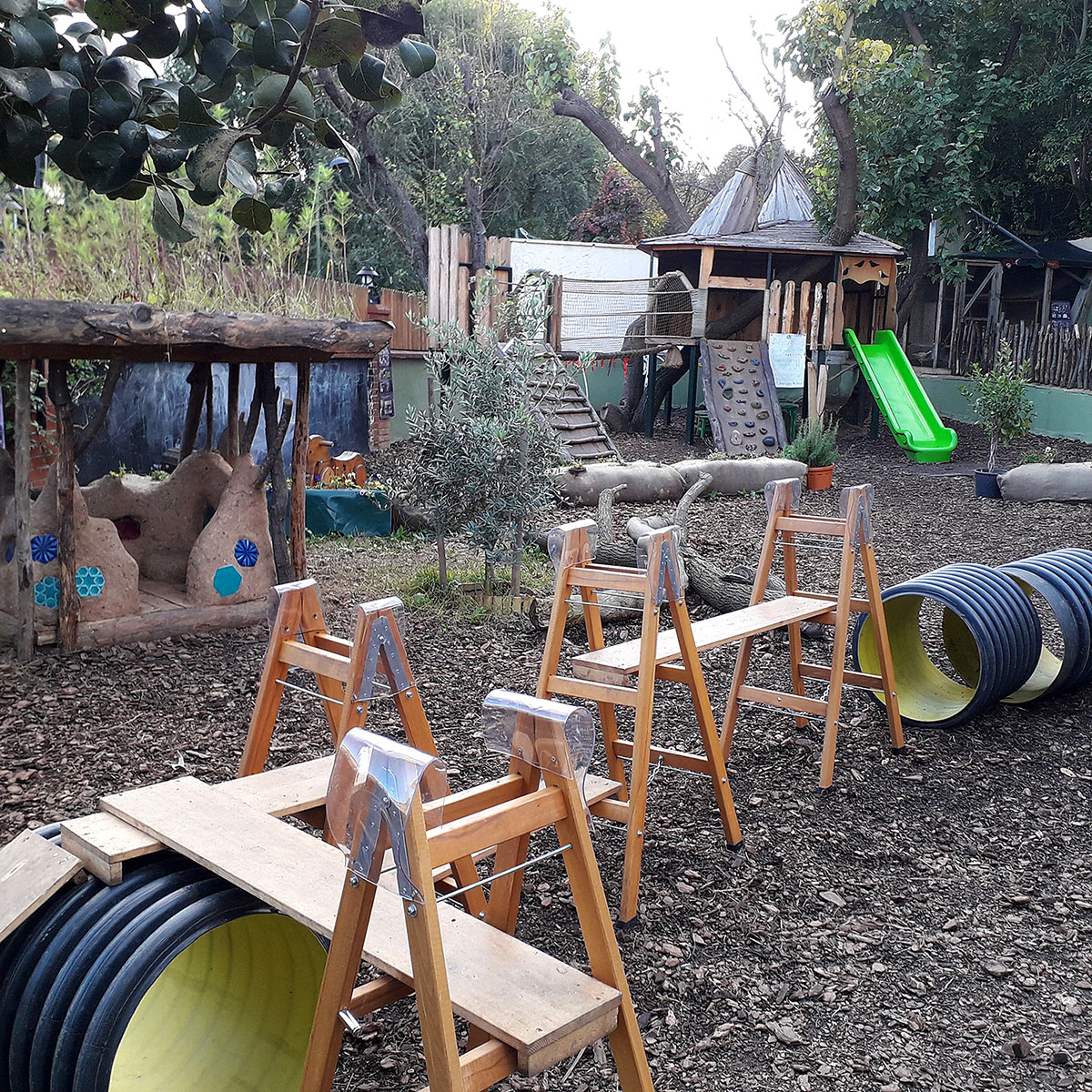 Huge pipes, wooden slats and ladders - items without a specific purpose - are an integral component of our playground. Even when more familiar objects such as a slide or swings are nearby, children of all ages are magically drawn to these more unusual items. They use them to build streets, tunnels, bridges and slides, stretching their boundless creativity to new heights. They initiate their own creative role play, learn to willingly take risks, and develop an “I can do it!” mindset.